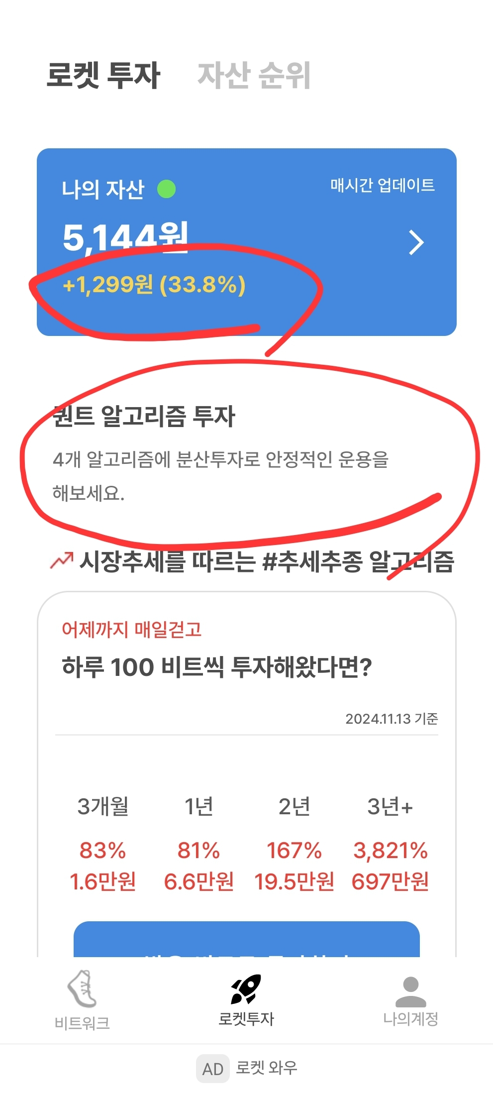 (1) 비트워크만의 차별점? - "로켓 투자"를 통한 비트 재투자 (고수익 가능!)
