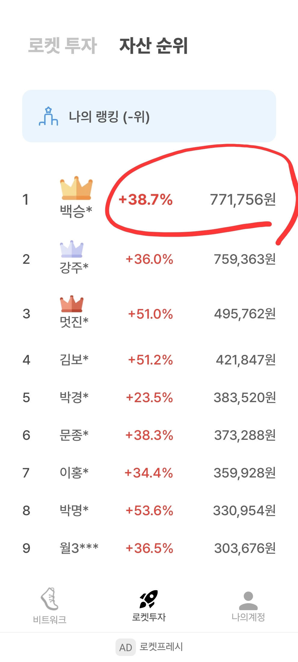 자산순위 1위분은 <<70만원이 넘는 수익>>을 거둔게 보이시나요~?