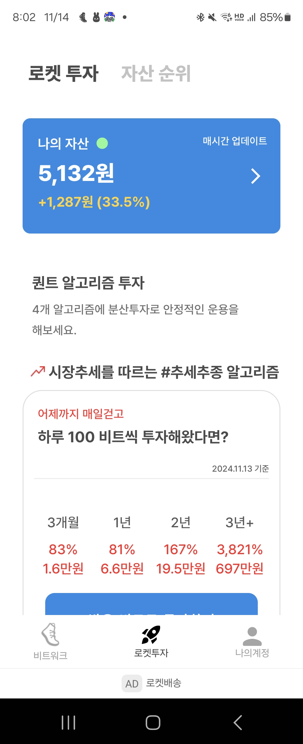 좋다고 생각됩니다. 처음부터 직접 운영하긴 어려운데, 비트워크는"알고리즘"을 통한 투자를 기본 서비스로 제공하니까요.